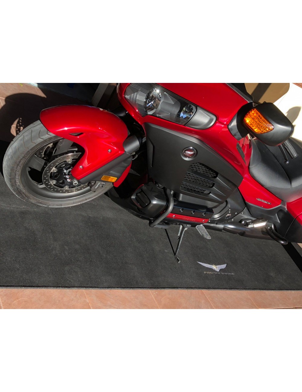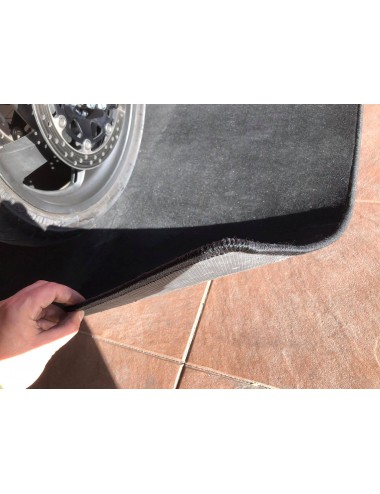 Černý koberec pod motocykl, menší koberce nejsou součástí balení!
