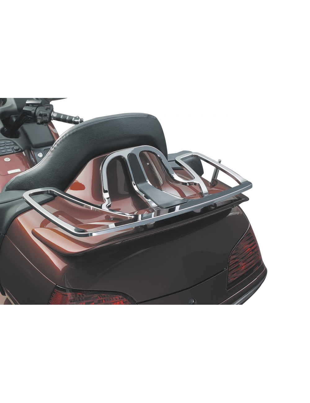 Chromovaný stylový nosič zavazadel na horní kufr motocyklu Honda GoldWing.