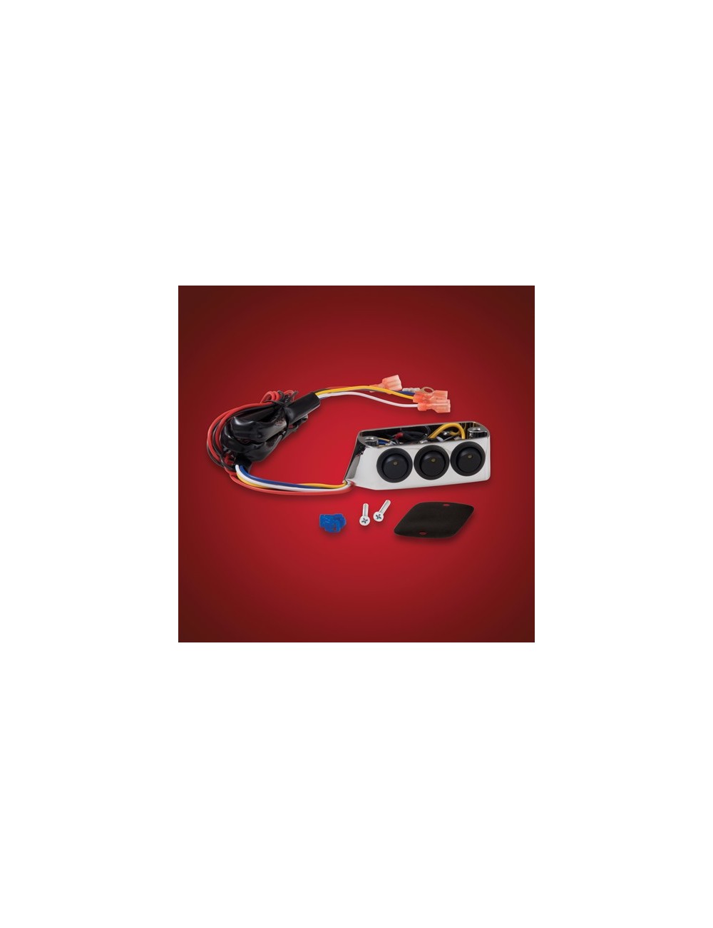 Chromovaný domeček na brzdovou nádobku se třemi přepínači.